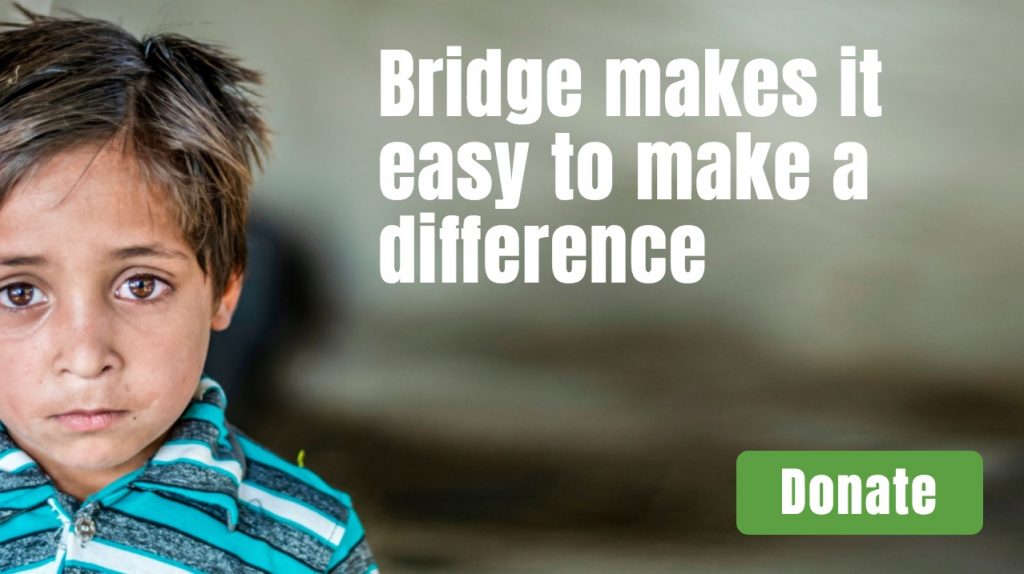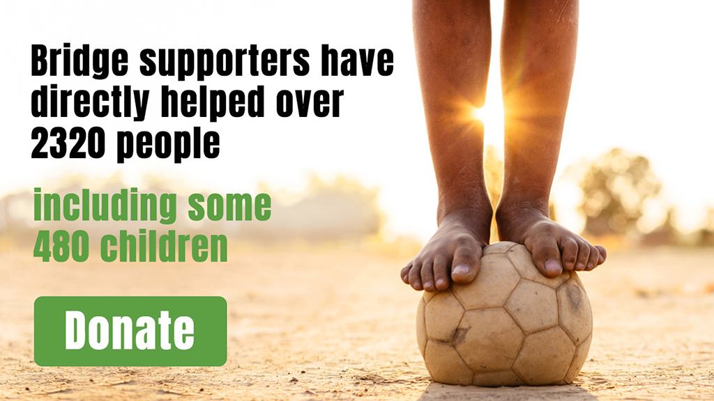 Bridge is managed by volunteers. With no office costs and minimal compliance and administrative overheads, your donations go directly to those intended (download our Annual Report).
